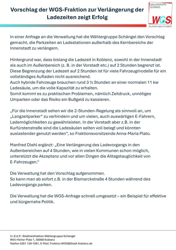 Veröffentlicht am 25. Oktober 20252. Januar 2026Pressebericht zu den Ladestationen in Koblenz von der WGS-Stadtratsfraktion