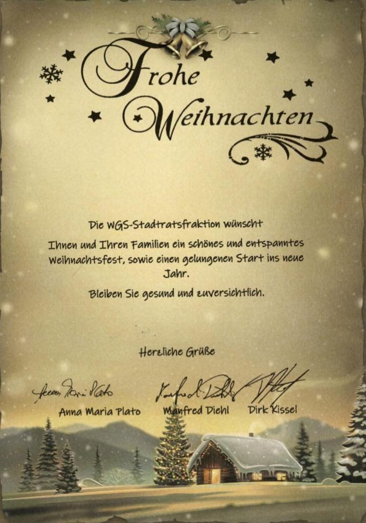 Veröffentlicht am 24. Dezember 20252. Januar 2026Weihnachtsgrüße der WGS-Stadtratsfraktion Screenshot